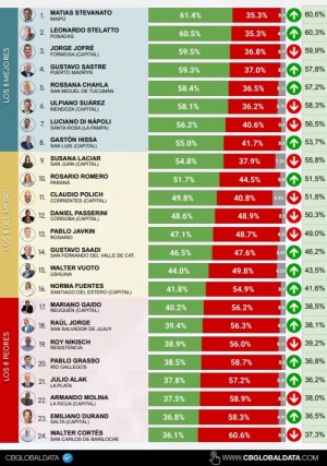 Passalacqua y Stelatto encabezan los rankings de imagen positiva en encuesta nacional